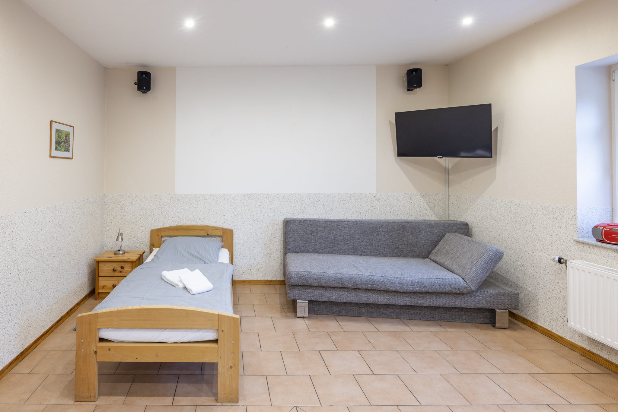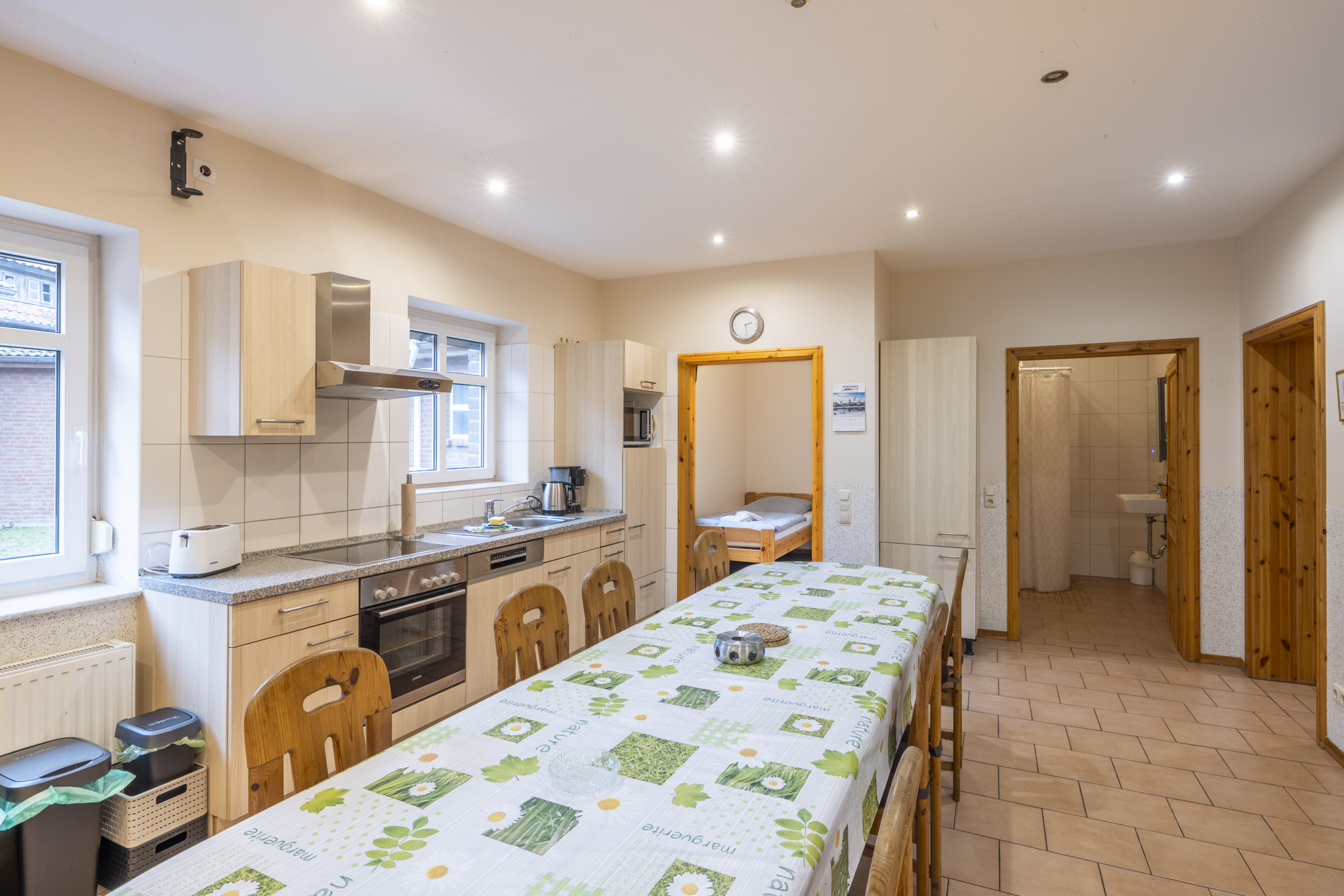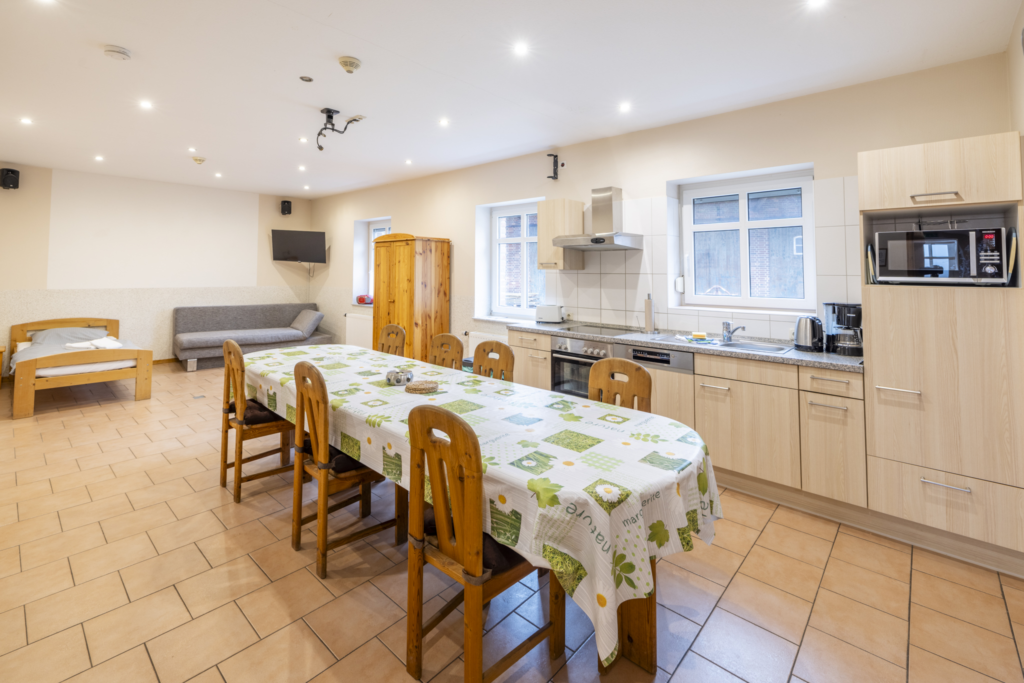Ideal für Gruppen: Unser Gruppenraum für bis zu 30 Personen mit Küche, Beamer und barrierefreiem Bad. Flexibel zu deiner Ferienwohnung dazubuchbar.